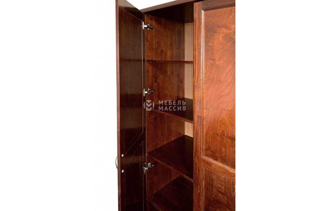Материалы: Шкаф изготовлен из высококачественной древесины, доступной в четырех вариантах на выбор: сосна, береза, бук или дуб. Благодаря многоступенчатой обработке древесины, изделие сохраняет свою привлекательность и долговечность на протяжении многих лет.